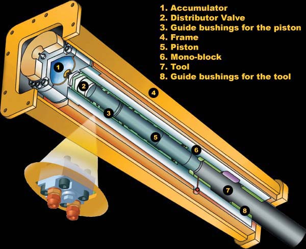 The unique stepped piston design delivers maximum energy to the chisel and minimum recoil to the breaker body.